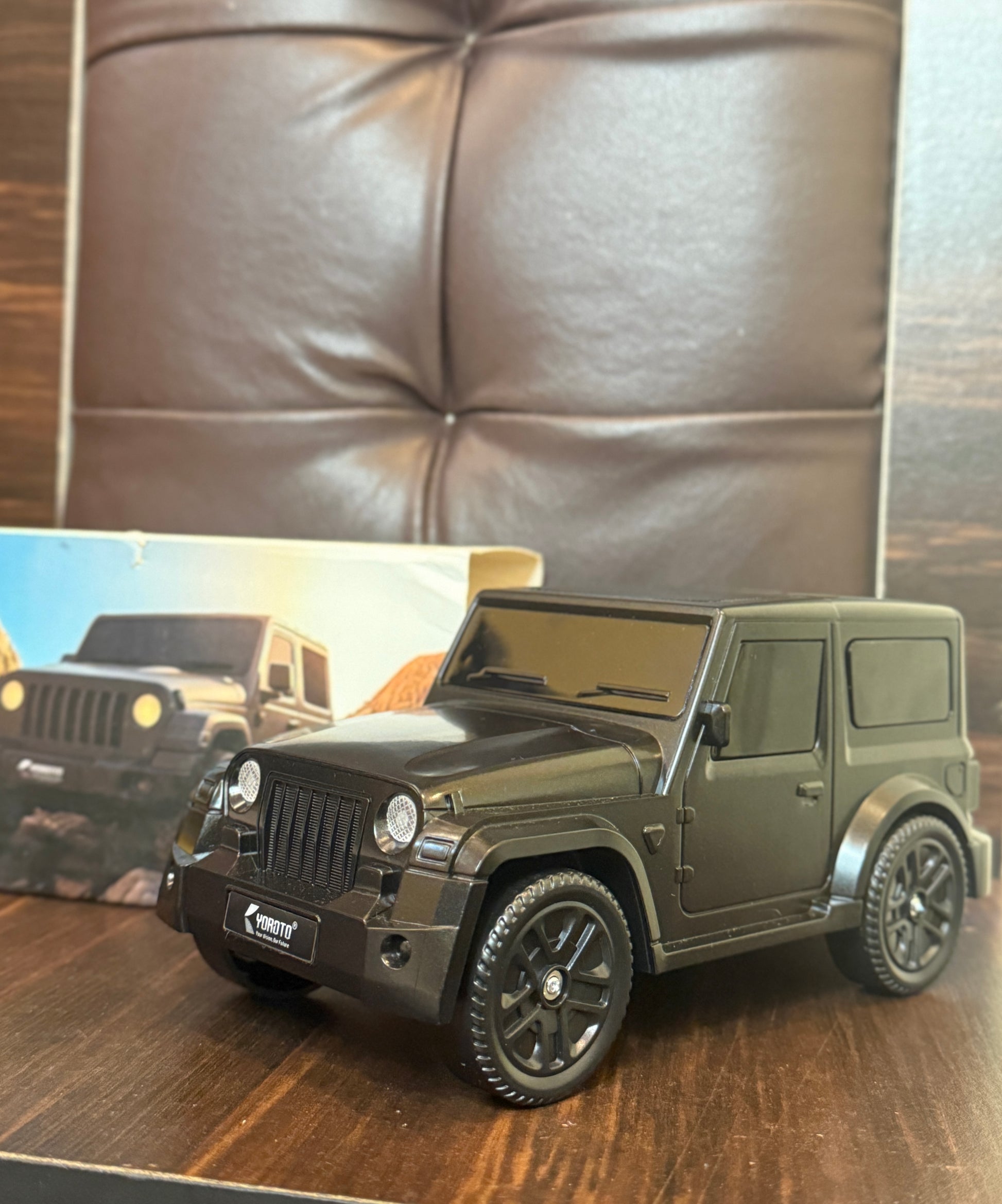 Introducing the Bluetooth speaker inspired by the rugged elegance of the Thar car, equipped with state-of-the-art solar charging technology and premium sound quality. Designed to echo the adventurous spirit of off-road exploration, this speaker combines robust functionality with sleek, automotive-inspired design cues.